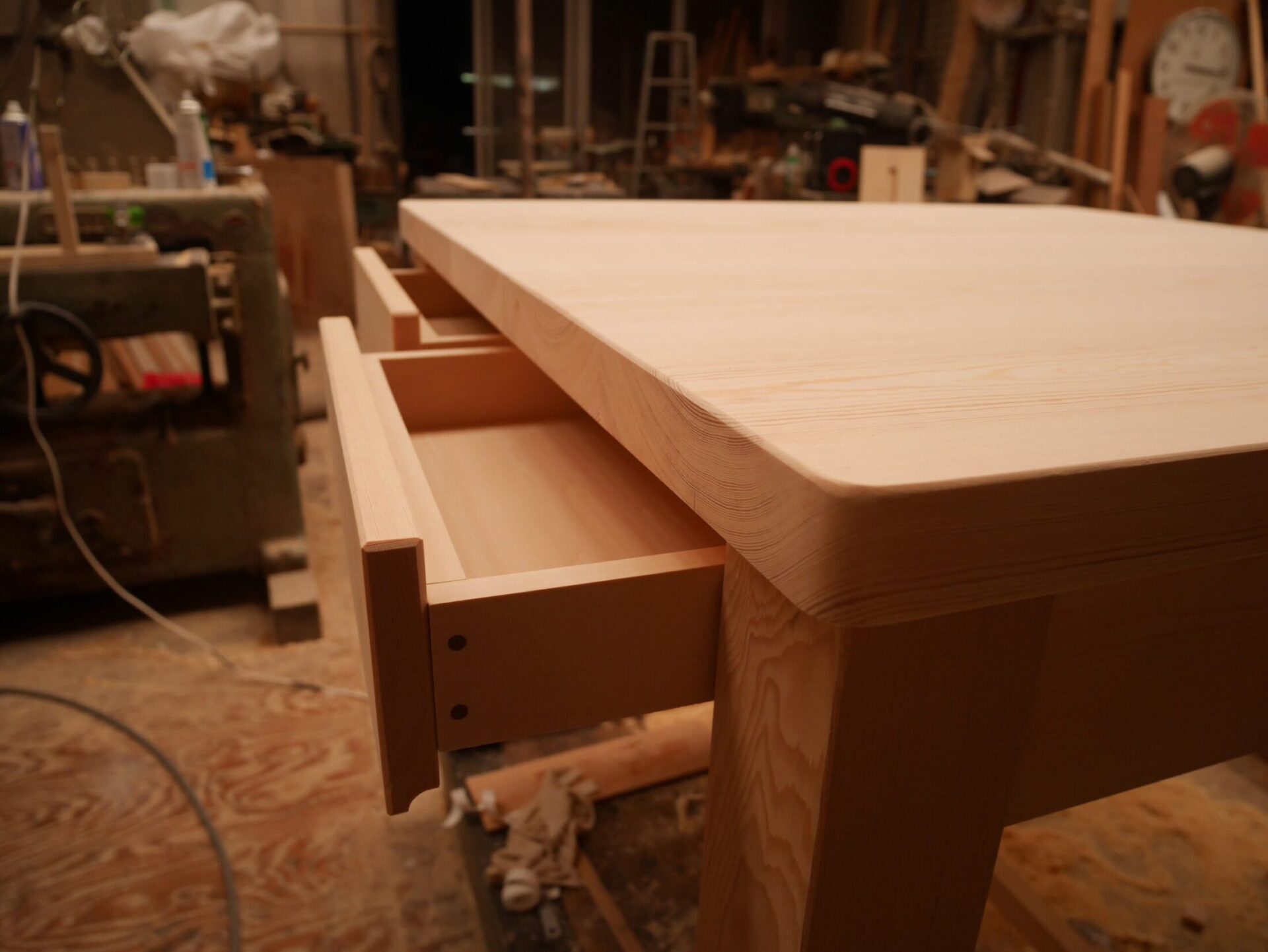 かなもくは、自然の温かみと美しい風合いが魅力の無垢材を使用し、300年先までお使いいただける家具作りを目指しています。一つひとつを丁寧に仕上げ、お客様のライフスタイルやご要望に合わせたオーダーメイドの家具を提供しております。
