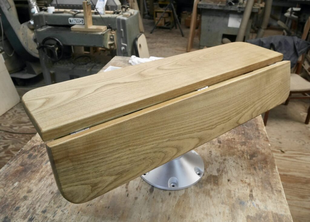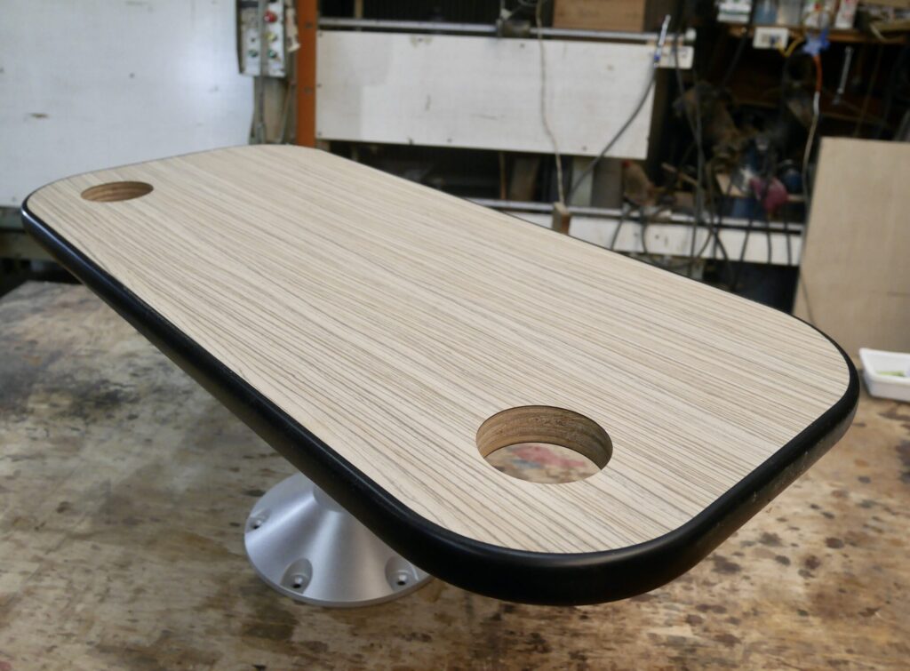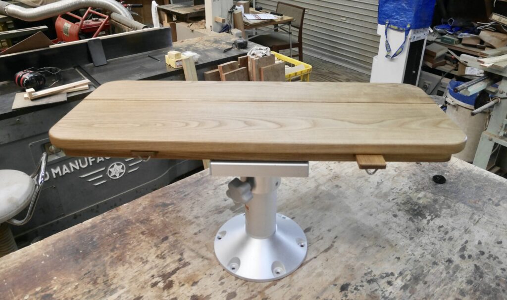今回はボートの船室のテーブルの依頼です。元々付いていたテーブルが邪魔なのでそれを取って折りたたみ式にして欲しいとの事でした。