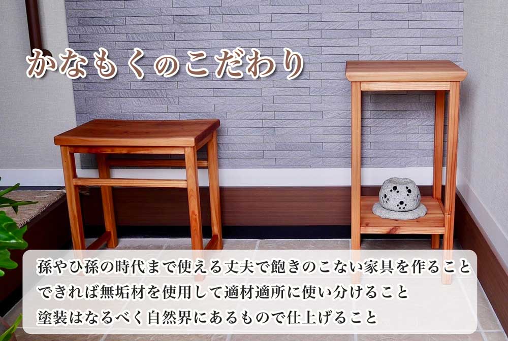 - 孫やひ孫の時代まで使える丈夫で飽きのこない家具を作ること。